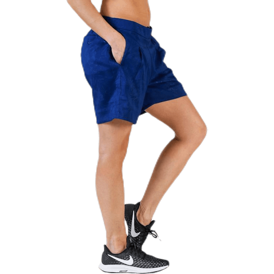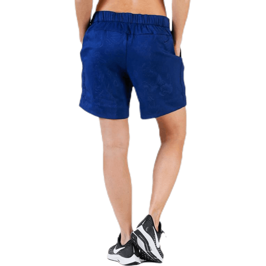 Nike - UV SU Emboss 6" Blå shorts är utformade för aktiva kvinnor som söker pålitlig prestanda. De använder stretchigt, svettavledande tyg för komfort under träningspass. En subtil blomembossad struktur ger en elegant touch inspirerad av historiska spelbrädor. Dri-FIT-teknik håller dig torr och fokuserad genom hela passet.