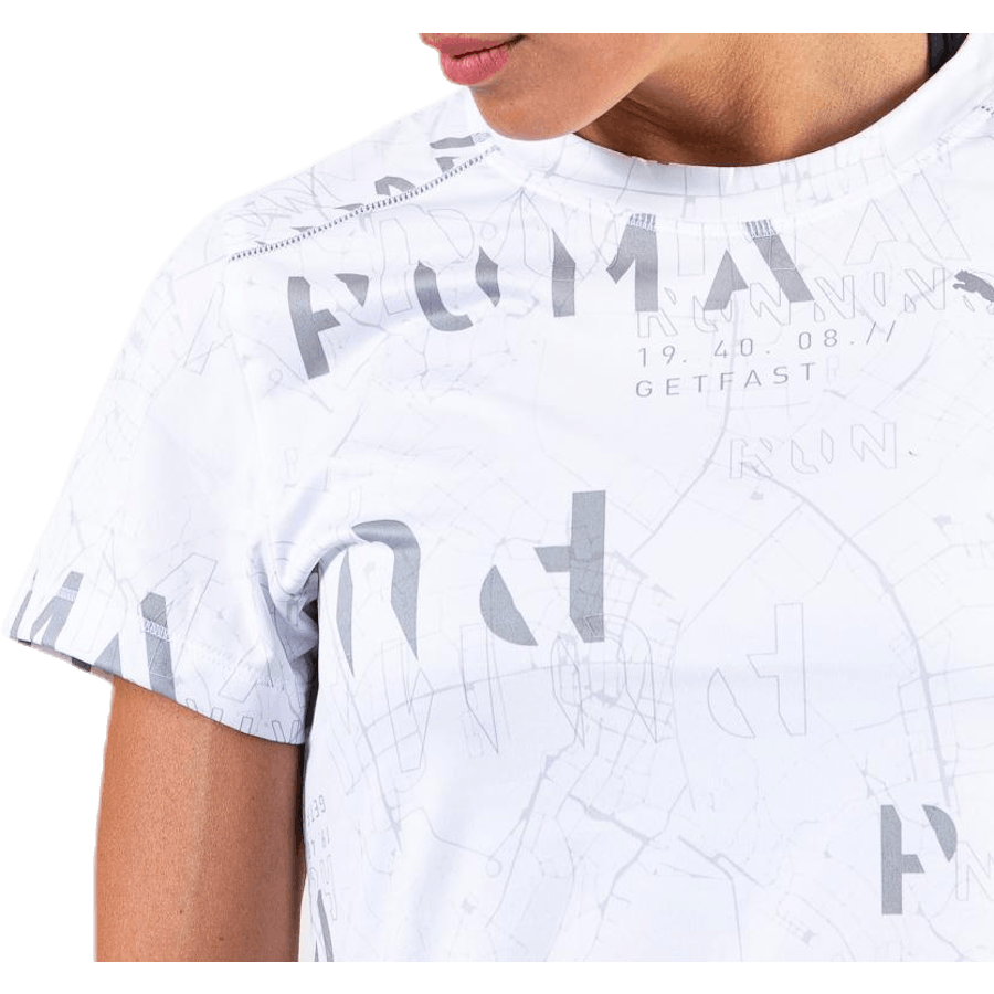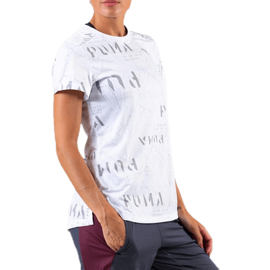 Puma Last Lap Graphic Tee White är en kvinnlig tränings-T-shirt utformad för träning i lågt ljus. Den kombinerar reflekterande detaljer med en lätt, fuktavledande tygkonstruktion. Med dryCELL-teknologi för svettavledning torkar den snabbt och håller komforten under hela passet. Platta sömmar minimerar skav och passar både löpning och gruppträning.