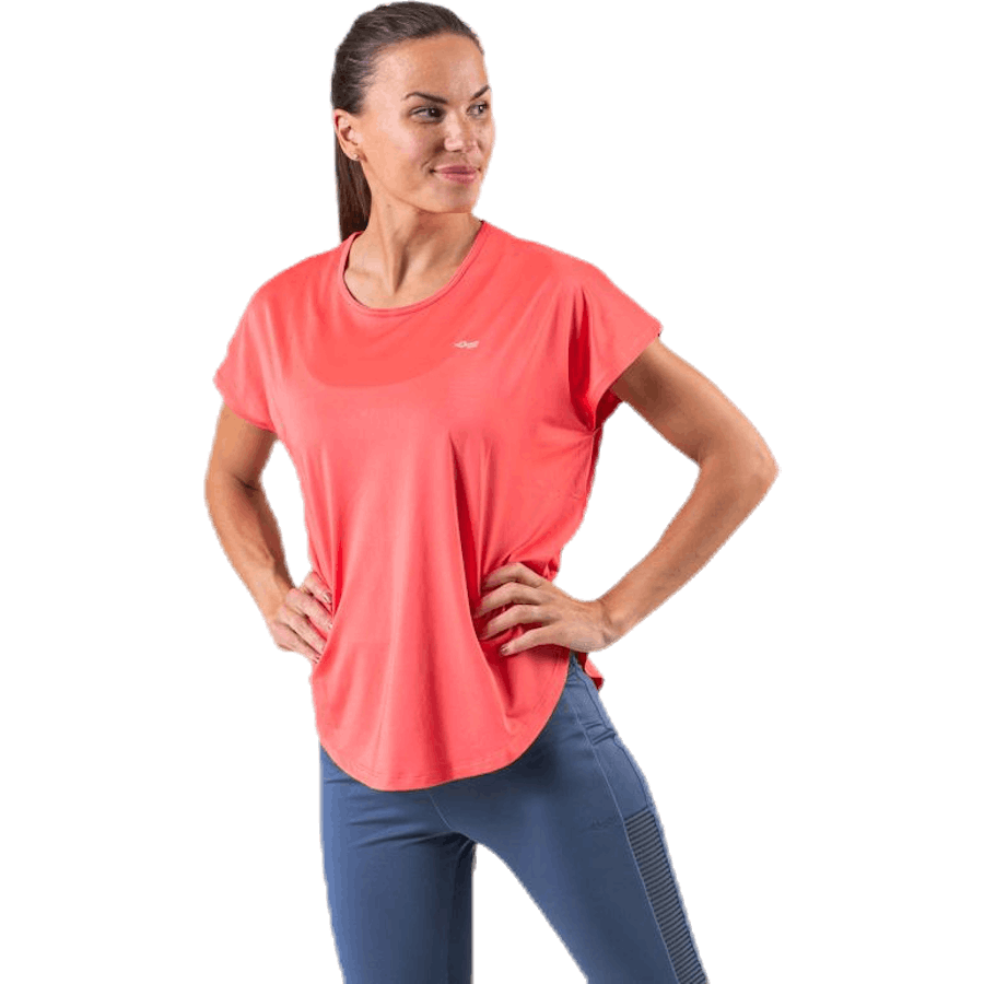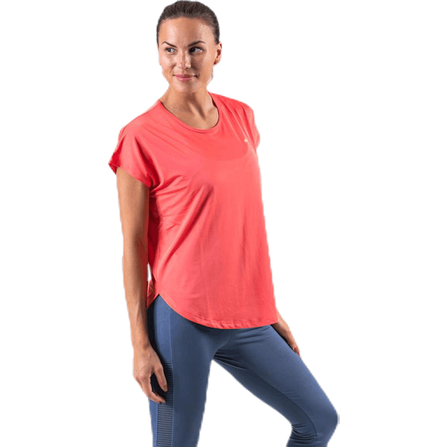 Röhnisch Leo Loose Top Pink/Red är ett funktionellt träningsplagg för aktiva kvinnor. Den har en bekväm, lös passform och en ren, stilren silhuett som passar många träningspass. Tillverkad i återvunnet tyg som transporterar fukt och håller dig torr. Den andningsbara designen ger komfort under längre träningspass.