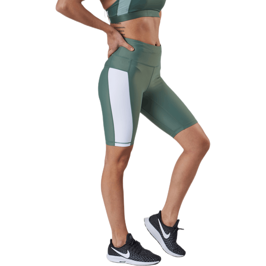 Björn Borg Stripe Bike Shorts Green är ett par sportshorts för kvinnor som tränar. De har en cykelfit som sitter nära kroppen för fri rörelse under träningspasset och tyget minskar skav. Den rena randdesignen ger ett modernt uttryck som passar ihop med gymtops.